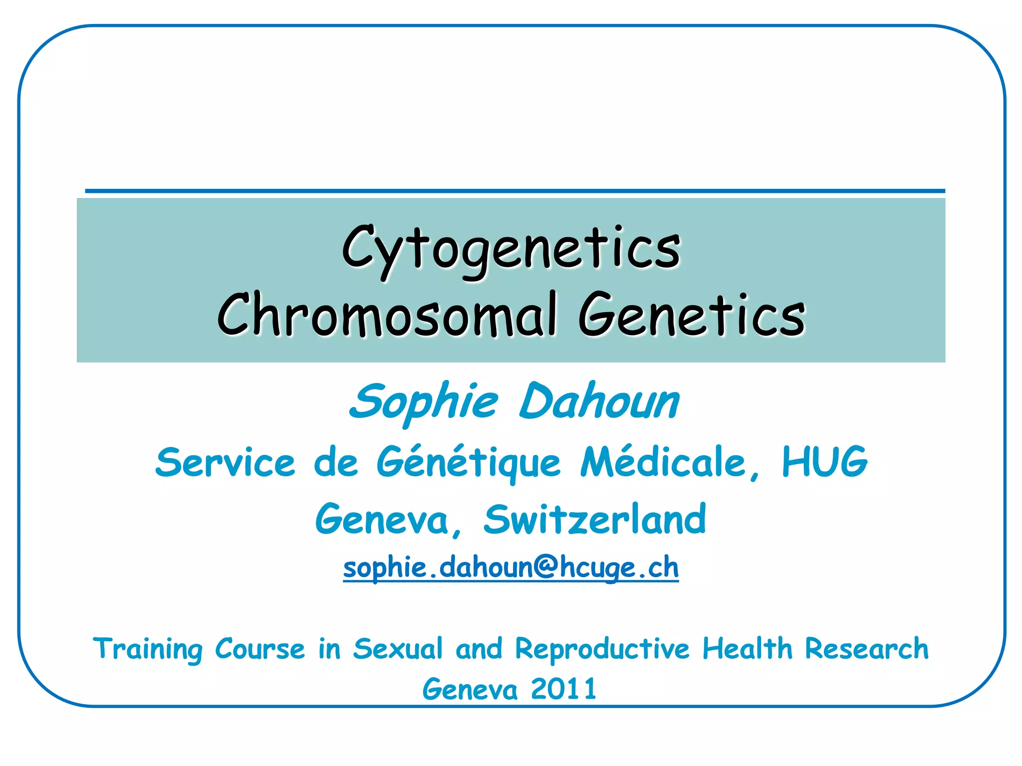 Cytogenetics is the study of chromosomes and chromosome abnormalities in relation to heredity and disease. It involves analyzing chromosomes through karyotyping and molecular cytogenetics techniques. Chromosome banding patterns allow chromosomes to be identified. Non-disjunction during meiosis can result in aneuploidies like Down syndrome. Advanced maternal age is a risk factor for non-disjunction. Both numerical and structural chromosome abnormalities can occur.