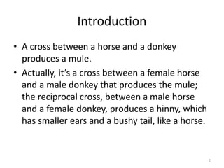 The document discusses chromosomal variations, particularly focusing on mules and genetic mutations such as duplications, deletions, inversions, and translocations. It describes a case study of a female mule named Krause, who bore two foals, suggesting unexpected inheritance patterns related to chromosome segregation. Additionally, it explains the implications of chromosomal mutations on phenotypes and the mechanisms of karyotyping.