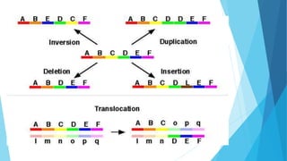 The document provides information about chromosomes and chromosomal aberrations. It begins by defining chromosomes as rod-shaped structures that carry genes and become visible during cell division. It then discusses two main types of chromosomal aberrations - structural aberrations which alter chromosome structure, and numerical aberrations which change chromosome number. Specific structural aberrations described include deletions, duplications, inversions, and translocations. Numerical aberrations include changes in ploidy levels such as polyploidy, as well as aneuploid conditions like trisomy and monosomy. The effects, origins, and uses of each type of aberration are summarized.