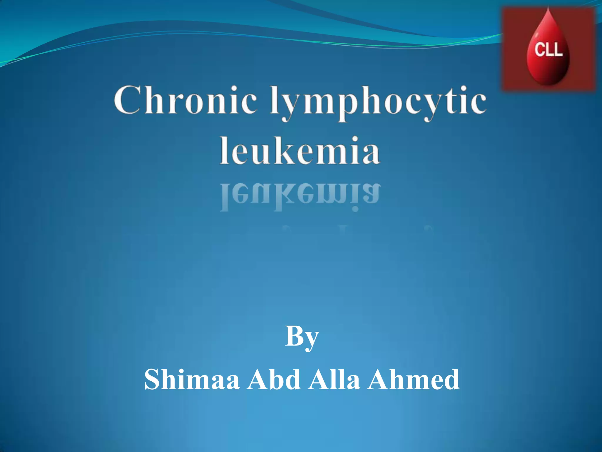 This document provides information on chronic lymphocytic leukemia (CLL), including its definition, diagnosis, incidence, aetiology, clinical features, diagnostic tests, staging systems, prognostic factors, and treatment approaches.