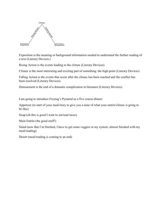 The document outlines a lesson plan for a 10th grade class. It includes details about the 23 students, 5 of whom have ADHD and 1 each has cerebral palsy and a hearing impairment. The objective is for students to learn and apply Freytag's Pyramid by completing a webquest and creating a PowerPoint presentation. Students will use the internet, PowerPoint, and texts. Participation is required. The teacher will evaluate understanding through the projects and revise the approach if needed.