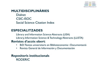Apropa't als punts d'informació bibliogràfica