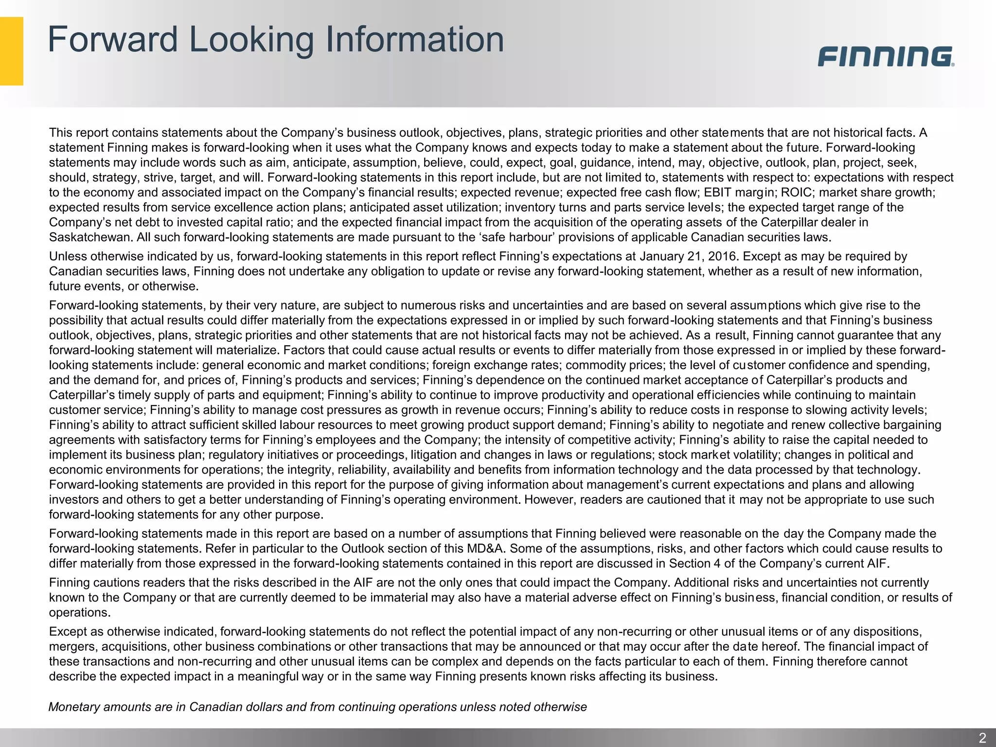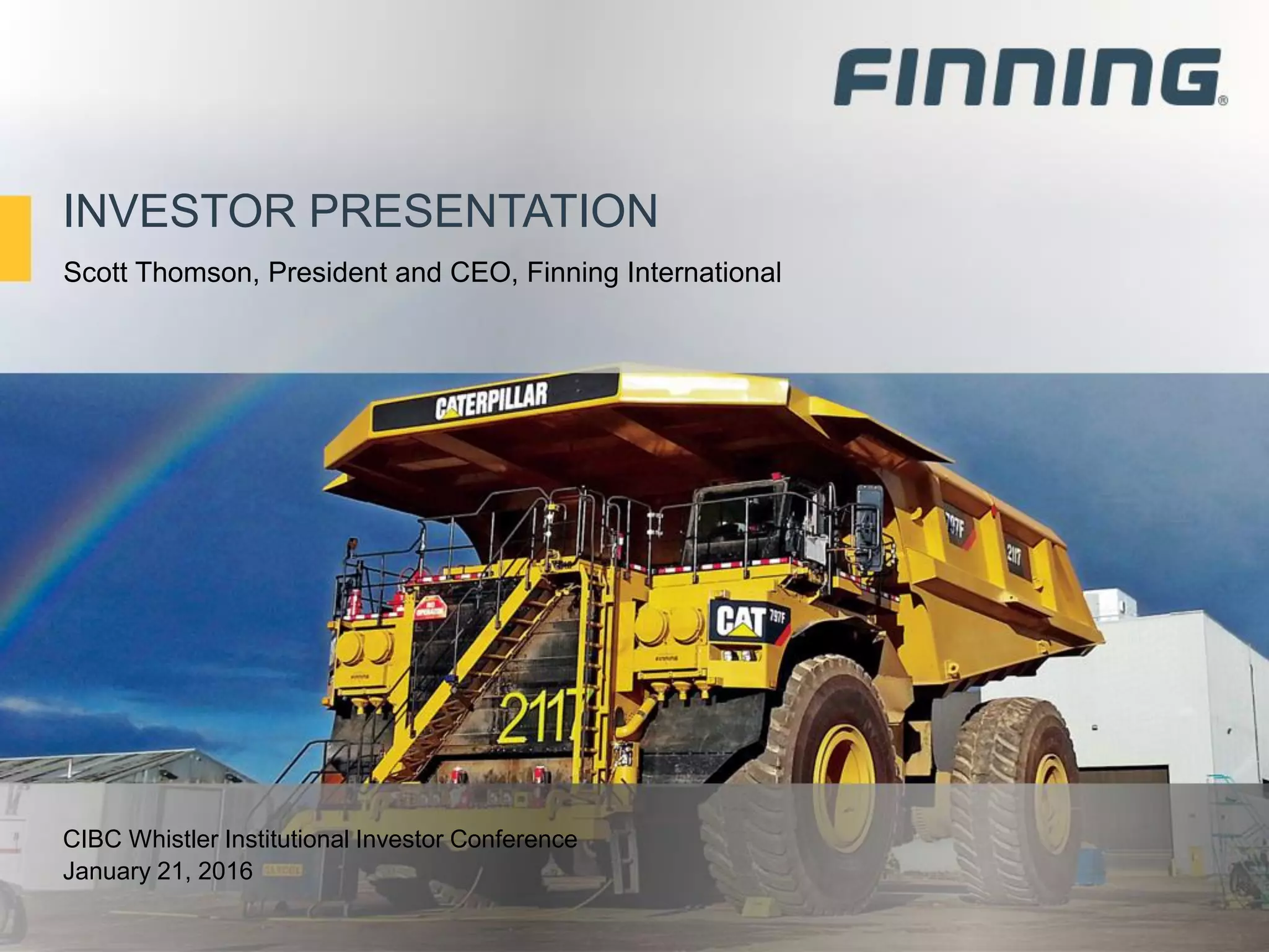 - Finning has a resilient business model with consistently strong cash flows, paying dividends at a sustainable rate of 13-19% of EBITDA and generating positive free cash flow even in difficult markets.