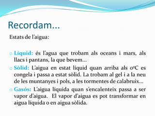 oLíquid: és l’agua que trobam als oceans i mars, als