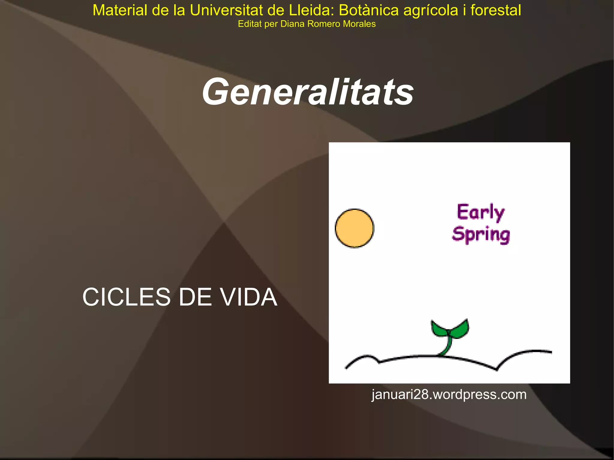 Generalitats CICLES DEVIDA Material de la Universitat de Lleida: Botànica agrícola i forestal Editat per Diana Romero Morales januari28.wordpress.com