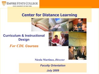 The document outlines the structure and processes of the Curriculum Committee at the Center for Distance Learning, detailing the members, their roles, and the review requirements for new and existing courses. It emphasizes the goals of curricular and instructional design, including enhancing learning through multimedia, collaborative techniques, and integration of library research. Additionally, it discusses the course development process, team configurations, approval procedures, and quality factors influencing course design.
