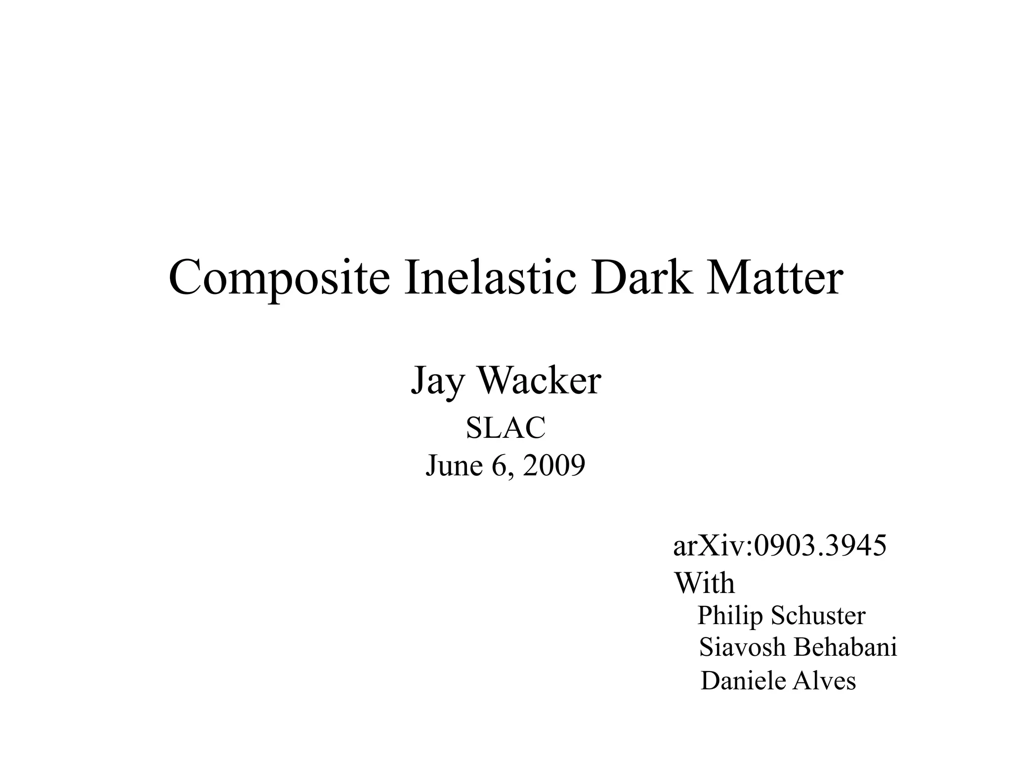 The document discusses composite inelastic dark matter and its implications for particle physics, focusing on distinctive recoil spectra and the dynamics within a new SU(Nc) gauge sector. It explores concepts such as degenerate states, scattering off heavier nuclei, and the potential for new experimental observations to better understand dark matter interactions. The outlook suggests that further studies and experiments are necessary to uncover the complexities and dynamics of dark matter, with various models and collider signatures to be investigated.