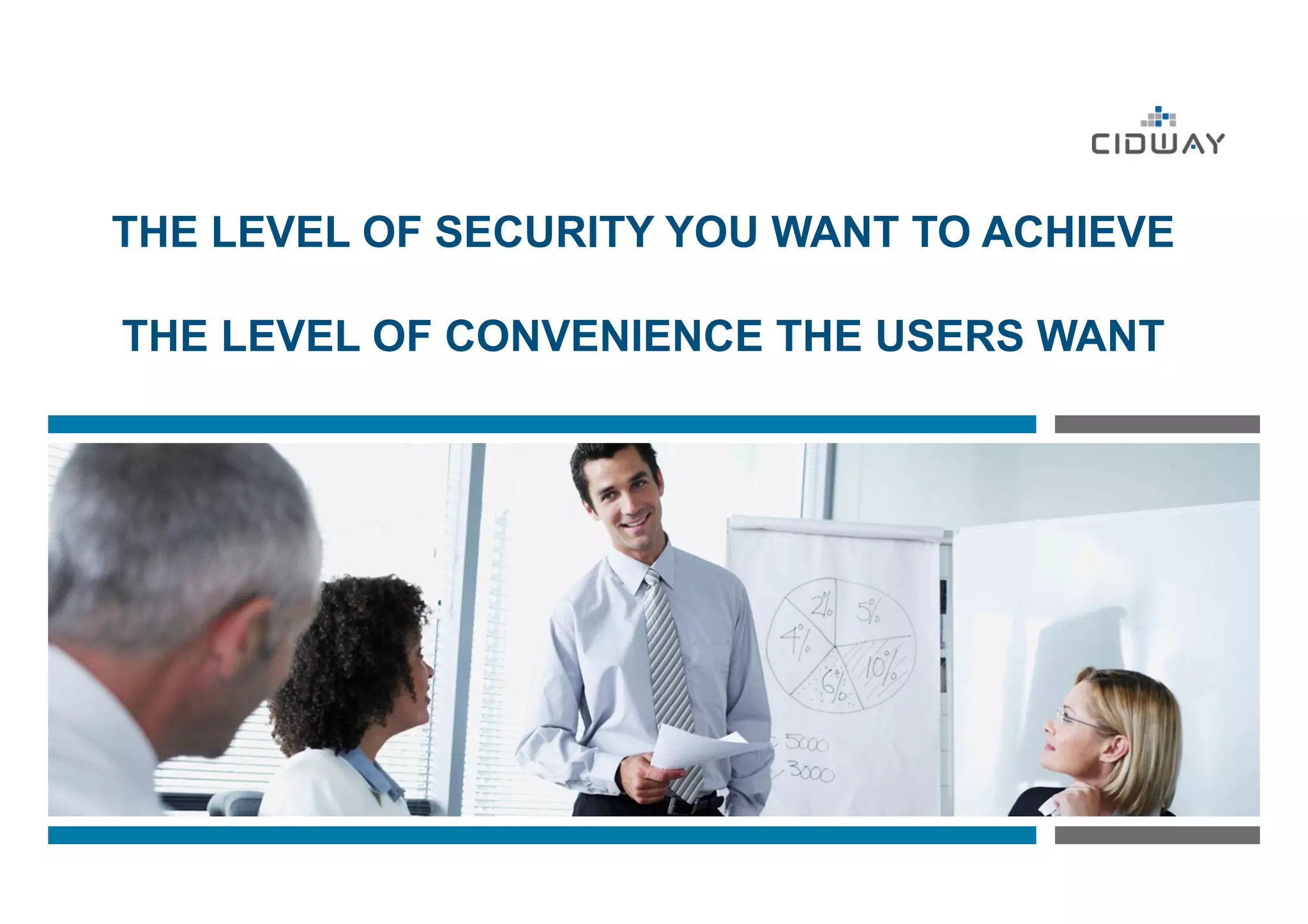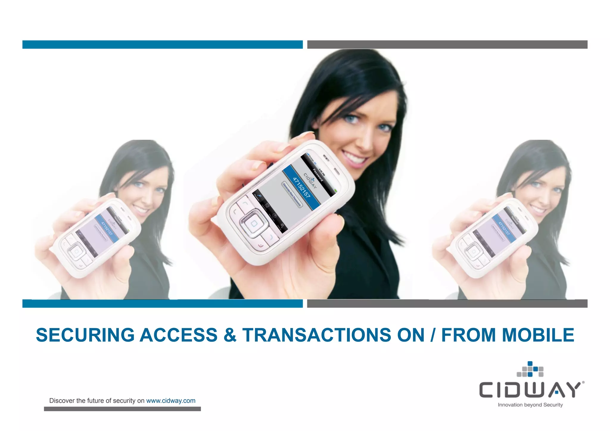 The document outlines a comprehensive security framework for mobile access and transactions, emphasizing strong authentication measures such as time-based OTP and mutual authentication. It highlights a simplified user experience and lower total costs of ownership due to the absence of additional hardware or software. Moreover, it details the secure integration of CIDWAY's SDKs into existing applications, ensuring high-level security without compromising user convenience.