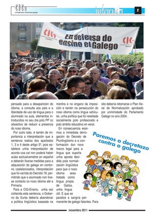 alumnado na aula, elementos in- lar, unha política que foi rexeitada Galego no ano 2004 .