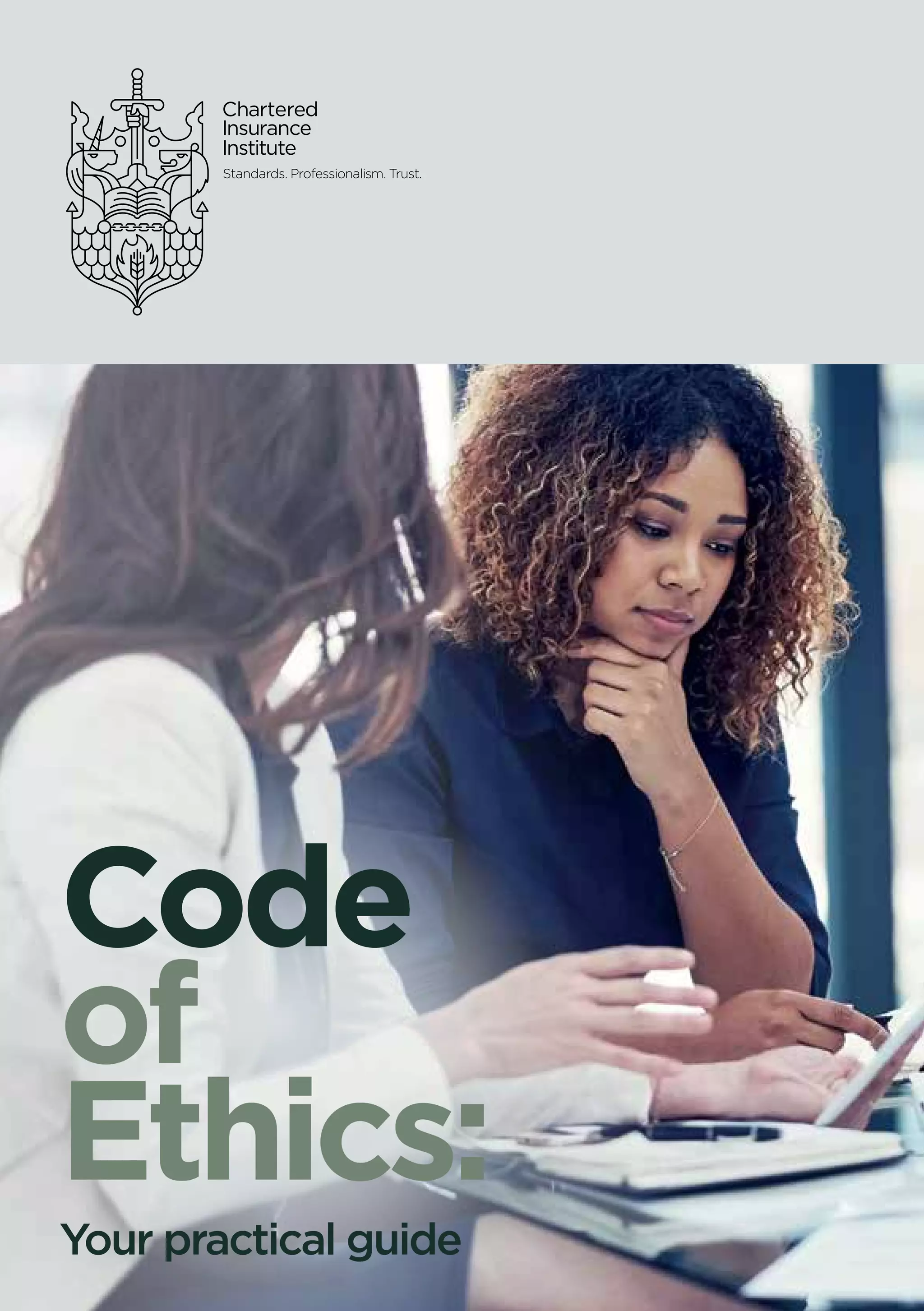 The document outlines the code of ethics for members of the Chartered Insurance Institute (CII), emphasizing five core duties that uphold professionalism and integrity in the insurance and financial planning professions. It stresses the importance of compliance with laws and regulations, as well as acting in the best interests of clients while maintaining high ethical standards. Case studies illustrate practical applications of these duties, encouraging members to reflect on their actions and promote ethical behavior within their organizations.