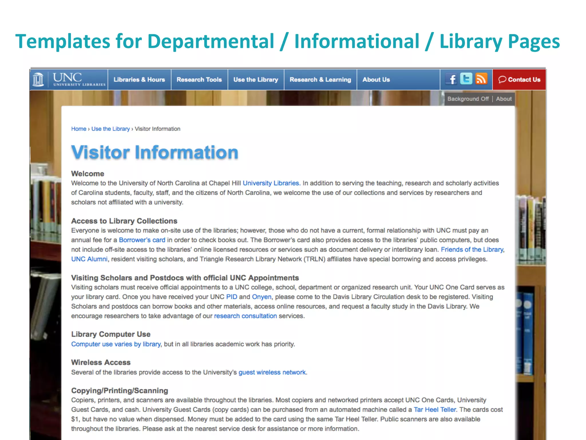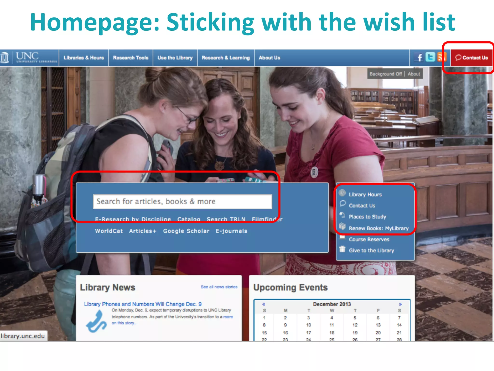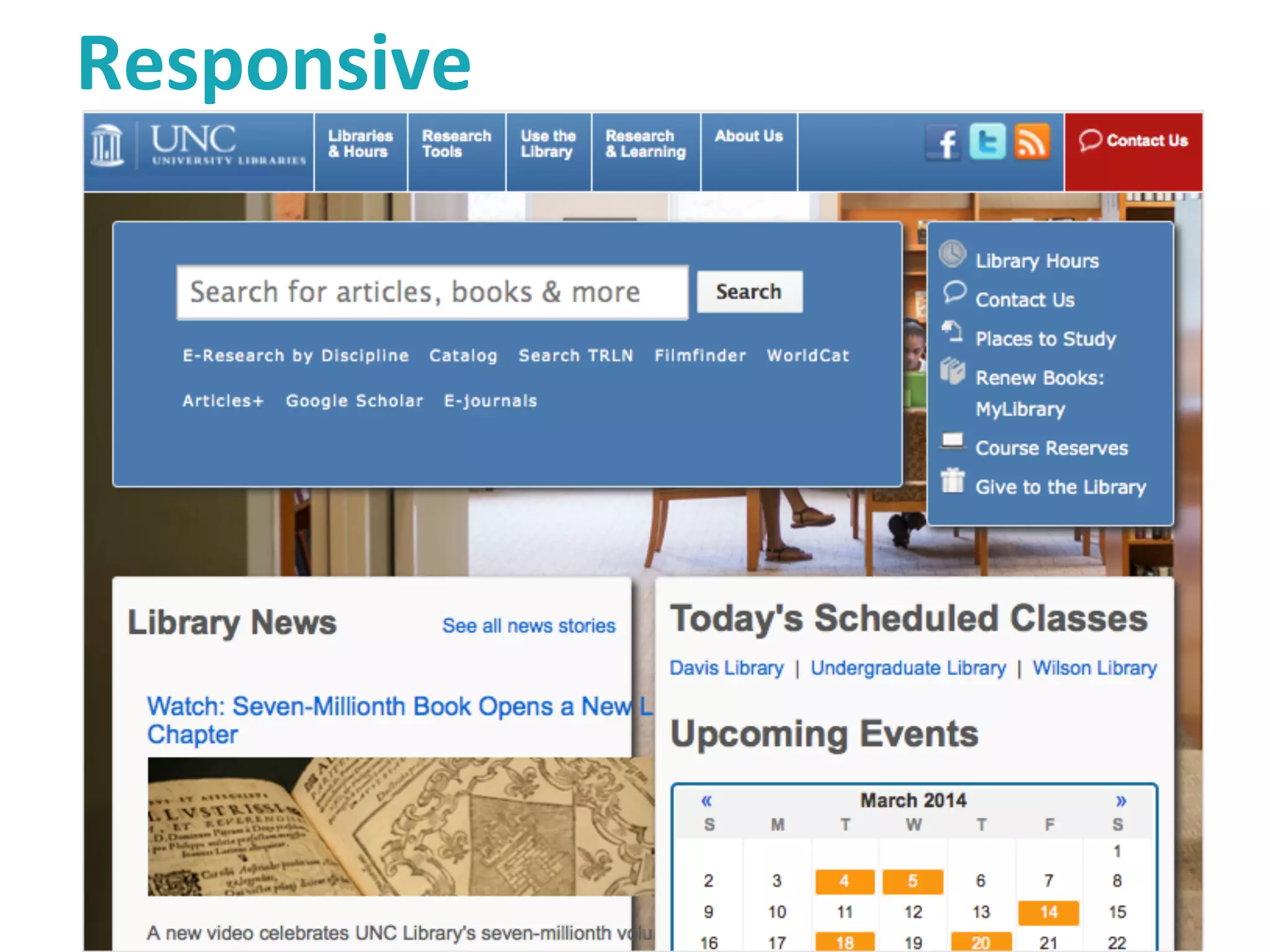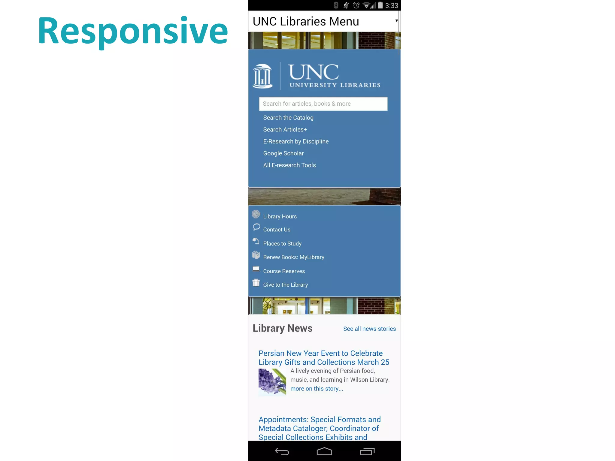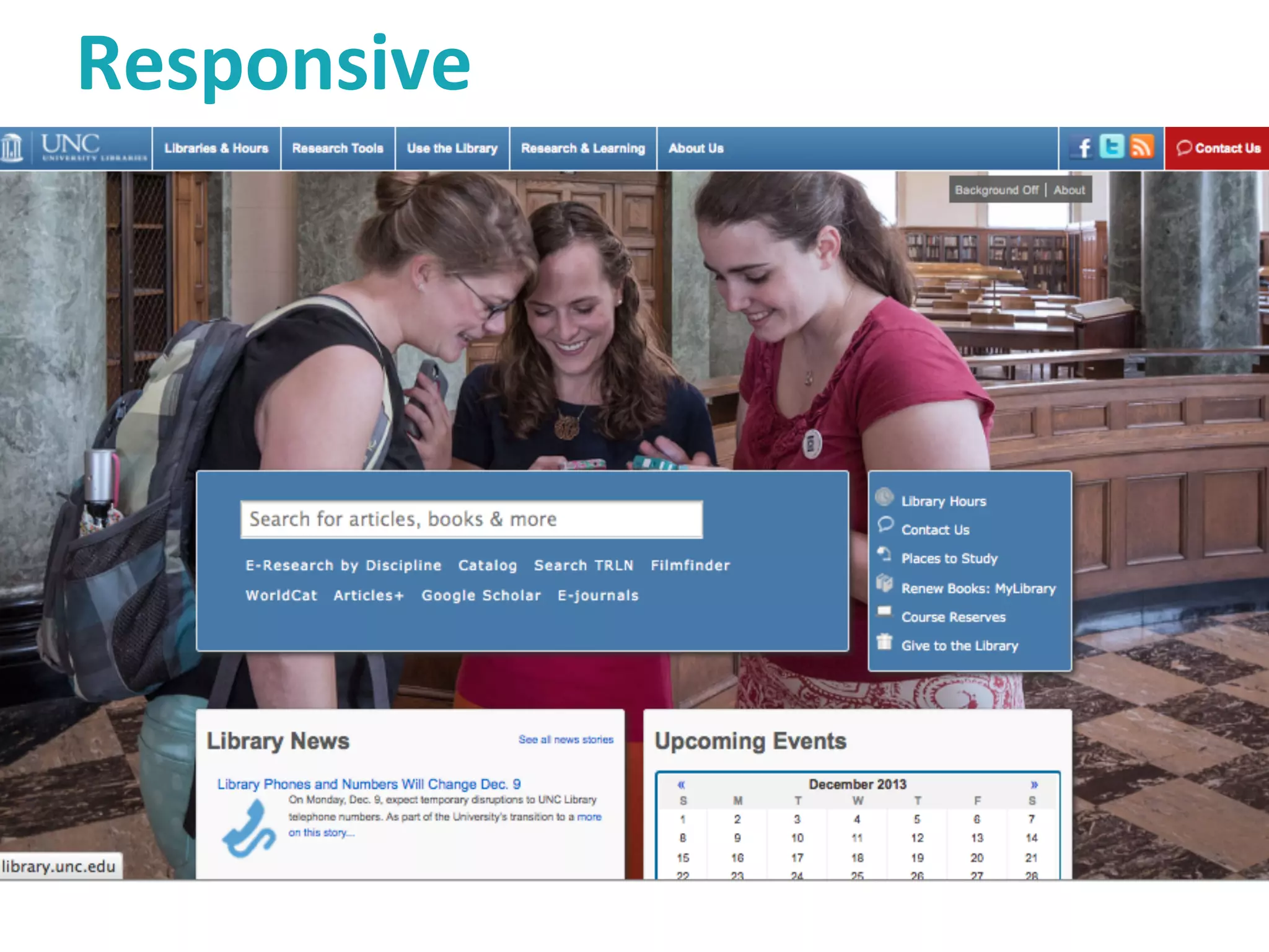 The document discusses the transition of a library website from an old design (1998-2013) to a new WordPress platform launched in August 2013. User feedback is included, highlighting both positive aspects, such as improved search functionality and usability, and criticisms like disorienting visuals and difficulties in accessing the catalog. Overall, responses indicate a mix of satisfaction and areas for improvement in the new website design.