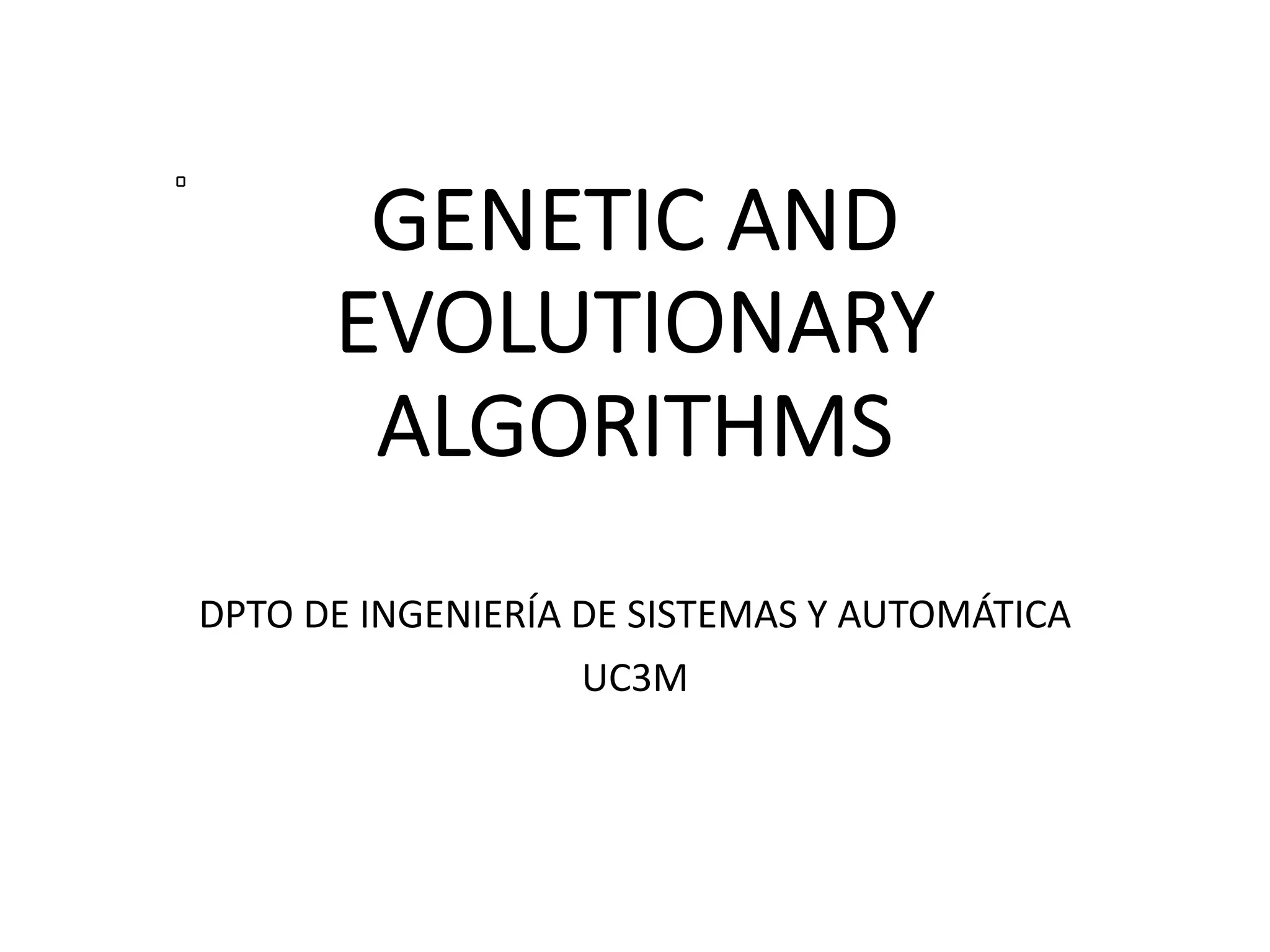 This document discusses genetic and evolutionary algorithms. It begins by explaining genetic algorithms, including their origins, how they manage populations of coded solutions, and how they use selection, crossover, and mutation to search for good solutions. It then provides more details on genetic algorithm terminology, features, search processes, and theoretical underpinnings like Holland's schema theorem. The document also discusses how genetic algorithms can be applied to problems with continuous parameters and provides examples of genetic algorithm operators and processes.