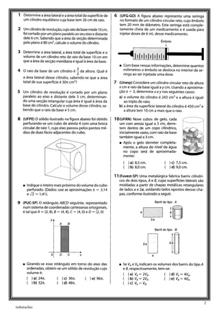 Exercícios de geometria espacial: cilindros