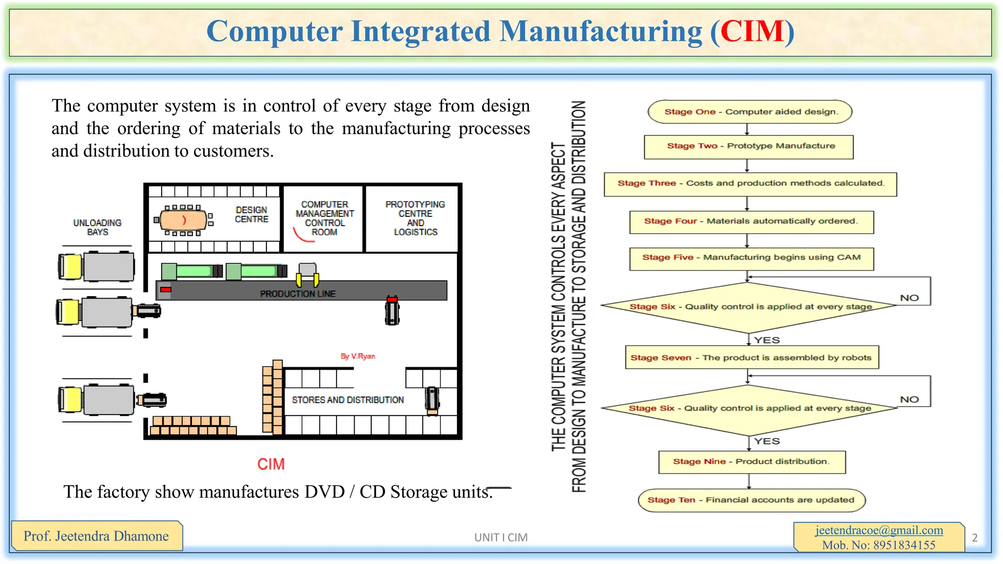 The document discusses Computer Integrated Manufacturing (CIM), detailing its necessity for modern manufacturing, including increased efficiency, accuracy, and competitiveness. It covers the evolution of CIM, components, software, and hardware involved in automated manufacturing processes, along with advantages such as improved data management and quality control. Additionally, it explores various types of automation systems and their roles in enhancing productivity and reducing operational costs.