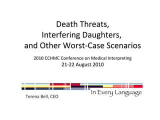 The document outlines the ethical considerations for medical interpreters, emphasizing the importance of confidentiality, accuracy, impartiality, and respect in various challenging situations. It provides real-life scenarios illustrating the dilemmas interpreters may face while adhering to the National Council on Interpreting in Health Care's code of ethics. The presentation encourages interpreters to advocate for patients' well-being when necessary, while maintaining professional boundaries and continuously improving their skills.