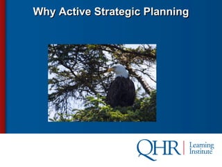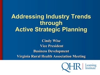 The document discusses the need for active strategic planning to address changing industry trends in healthcare delivery. It outlines political, economic, and regulatory factors impacting hospitals and emphasizes the importance of monitoring performance, making tough decisions around services, physician relationships, and costs. Recommendations include understanding community needs, assessing service line sustainability, and addressing losses.