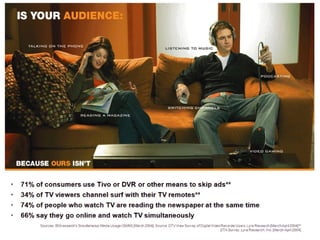 The document discusses the effectiveness of cinema advertising, noting that it has high recall rates among moviegoers even weeks and months after viewing. It provides statistics showing that cinema advertising has a large potential audience, as billions of people go to movies each year, many of whom are in key demographics. The document also outlines the various ways brands can advertise in theaters, such as slide programs, digital spots, concessions, signage, audio spots, and online banner ads.