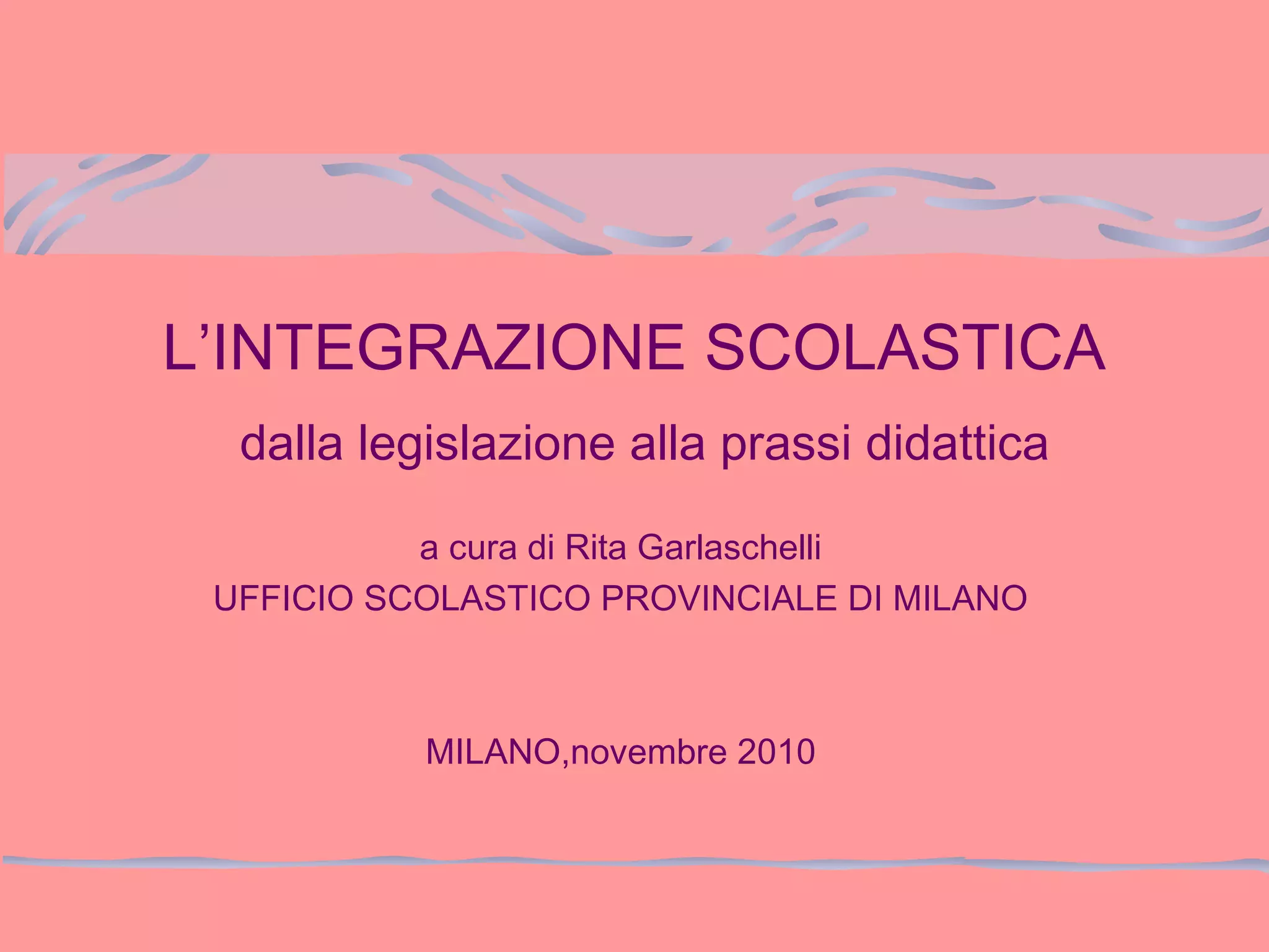 Il documento tratta l'evoluzione dell'integrazione scolastica per gli alunni con disabilità in Italia, evidenziando la necessità di passare da un approccio di inserimento a uno di integrazione tramite politiche e normative dal 1971 ad oggi. Si sottolinea l'importanza di un approccio educativo inclusivo, che coinvolga famiglia e professionisti in un contesto di corresponsabilità, e la centralità della persona nell'ambito della didattica. Inoltre, vengono descritte modalità operative come il Piano Educativo Individualizzato (PEI) e la diagnosi funzionale, essenziali per pianificare e attuare interventi su misura per ogni studente.