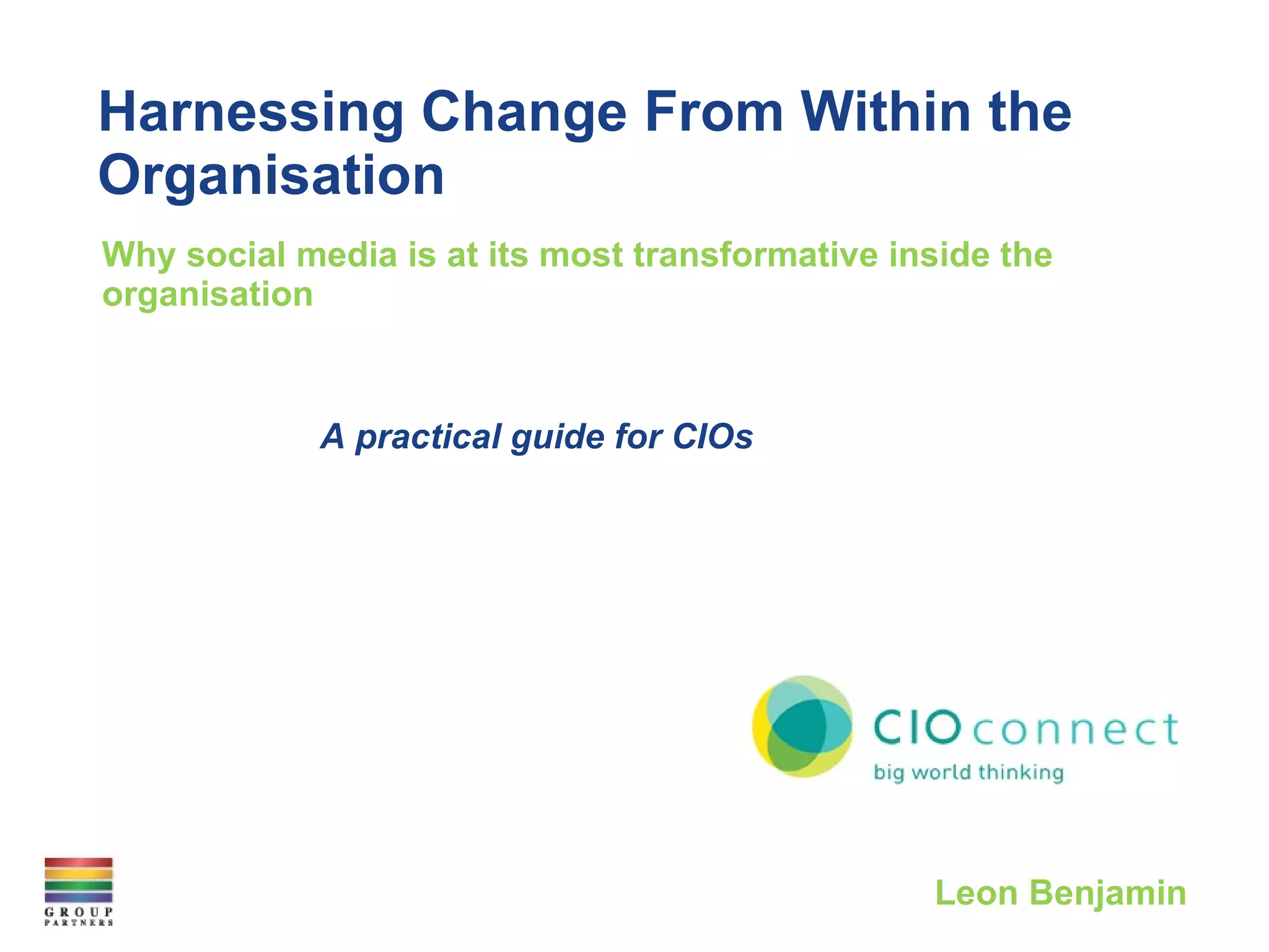The document discusses the transformative power of social media within organizations, advocating for a shift from traditional command-and-control structures to more collaborative, peer-to-peer models. It highlights various case studies showcasing the benefits of social media in increasing productivity and driving sales while addressing modern workforce challenges such as temporary employment and workplace stress. The text emphasizes the importance of building community and trust within organizations to harness the full potential of social media for business success.