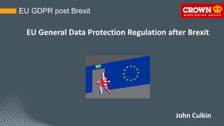 The document outlines the implications of the EU General Data Protection Regulation (GDPR) post-Brexit, emphasizing that GDPR remains enforceable in the UK and Ireland. It provides details on compliance requirements, categories of information processing, and potential fines for breaches, underscoring the importance of information governance to mitigate risks. Additionally, it suggests steps for organizations to achieve compliance, including conducting information audits and establishing robust data protection frameworks.