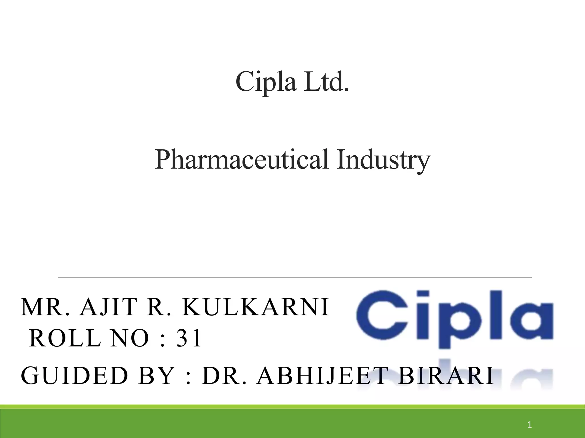 Cipla Ltd. is a leading global pharmaceutical company founded in 1935, known for its commitment to high-quality branded and generic medicines. The company has a significant presence in various therapeutic areas, including respiratory and HIV/AIDS treatments, and operates in over 100 countries with a product range exceeding 1000 items. Despite facing competition and market challenges, Cipla is positioned strongly in the Indian pharmaceutical sector and has opportunities for expansion in Alzheimer's disease medication and emerging markets.