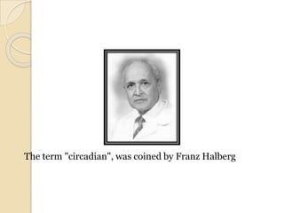 Circadian rhythms are 24-hour biological cycles that regulate various bodily functions like sleep-wake cycles, temperature regulation, and hormone secretion. They are controlled by a master clock in the brain and influenced by environmental cues like light exposure. Disruptions to circadian rhythms can cause sleep disorders like delayed sleep phase syndrome where one's sleep schedule is delayed by 2+ hours, or non-24 hour sleep-wake disorder where the circadian rhythm follows a 25-27 hour cycle. Shift work and jet lag are also considered extrinsic circadian rhythm disorders.
