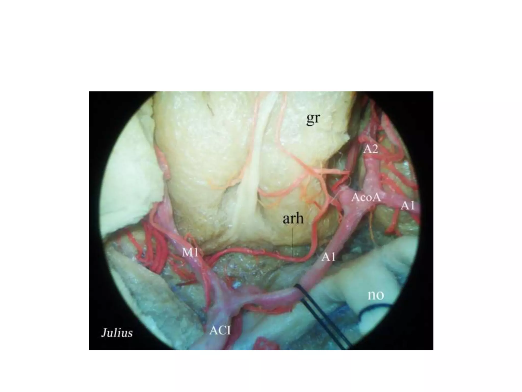 1. The document provides information about the circle of Willis and various skull base approaches through diagrams and images. It discusses the anatomy of arteries like the anterior cerebral artery, middle cerebral artery, posterior communicating artery, and internal carotid artery.