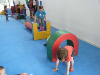 The document describes a group going on an obstacle course that included ramps, mountains, bridges, walking along beams, going over and under obstacles, somersaults, jumping through hoops, and balancing, and that everyone enjoyed it so much they plan to do another obstacle course again in the future.