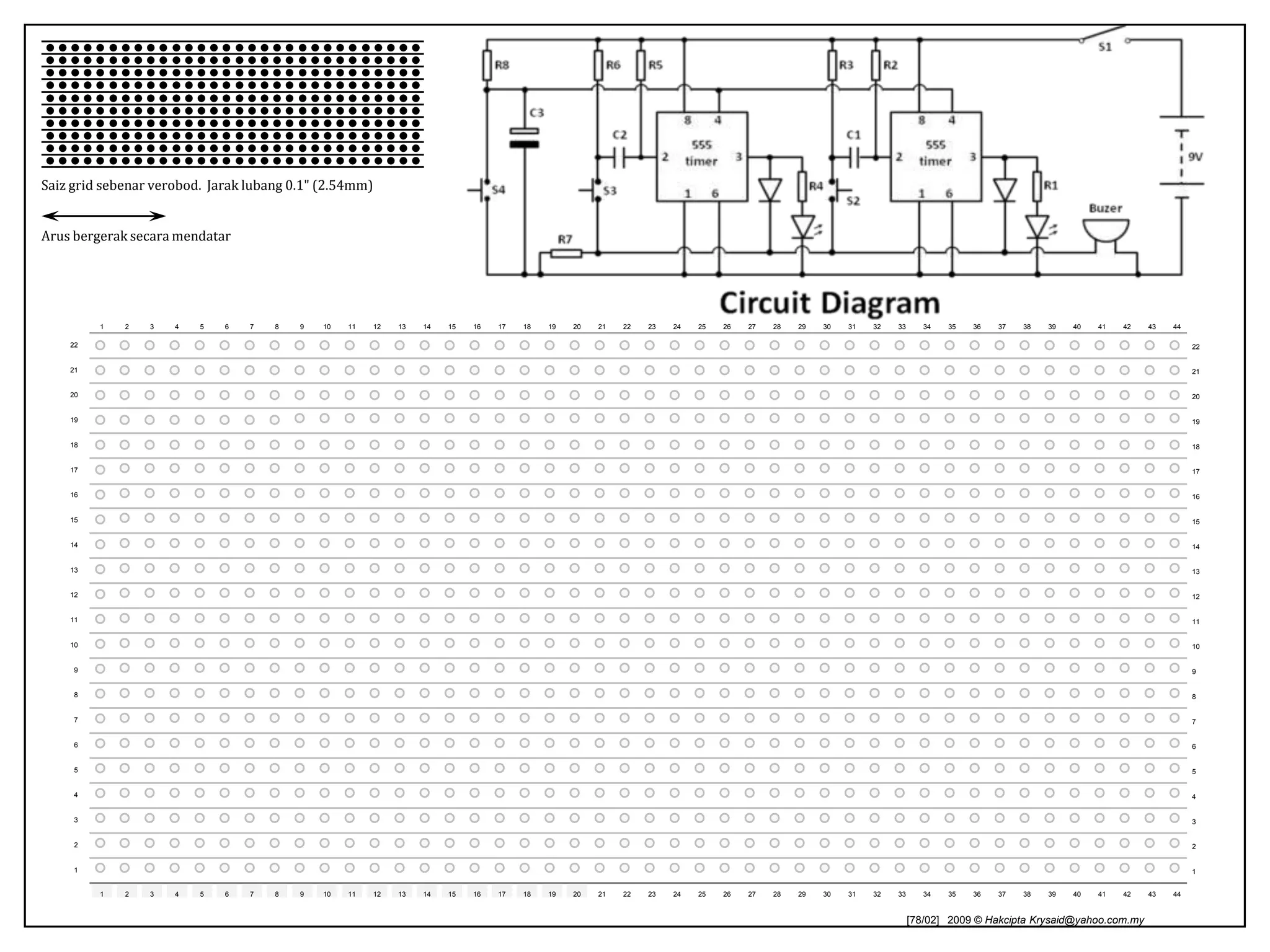 This document provides circuit symbols and their explanations used in circuit diagrams. It includes common electronic components like batteries, resistors, capacitors, transistors, integrated circuits, and other symbols. The document also demonstrates how to plan circuit board layouts by placing components and drawing trace connections between them on a grid-based board template. Examples are given of improving circuit board layout plans and checking the designs. Guidance is provided on positioning integrated circuits in the center and drawing positive and negative power connections.