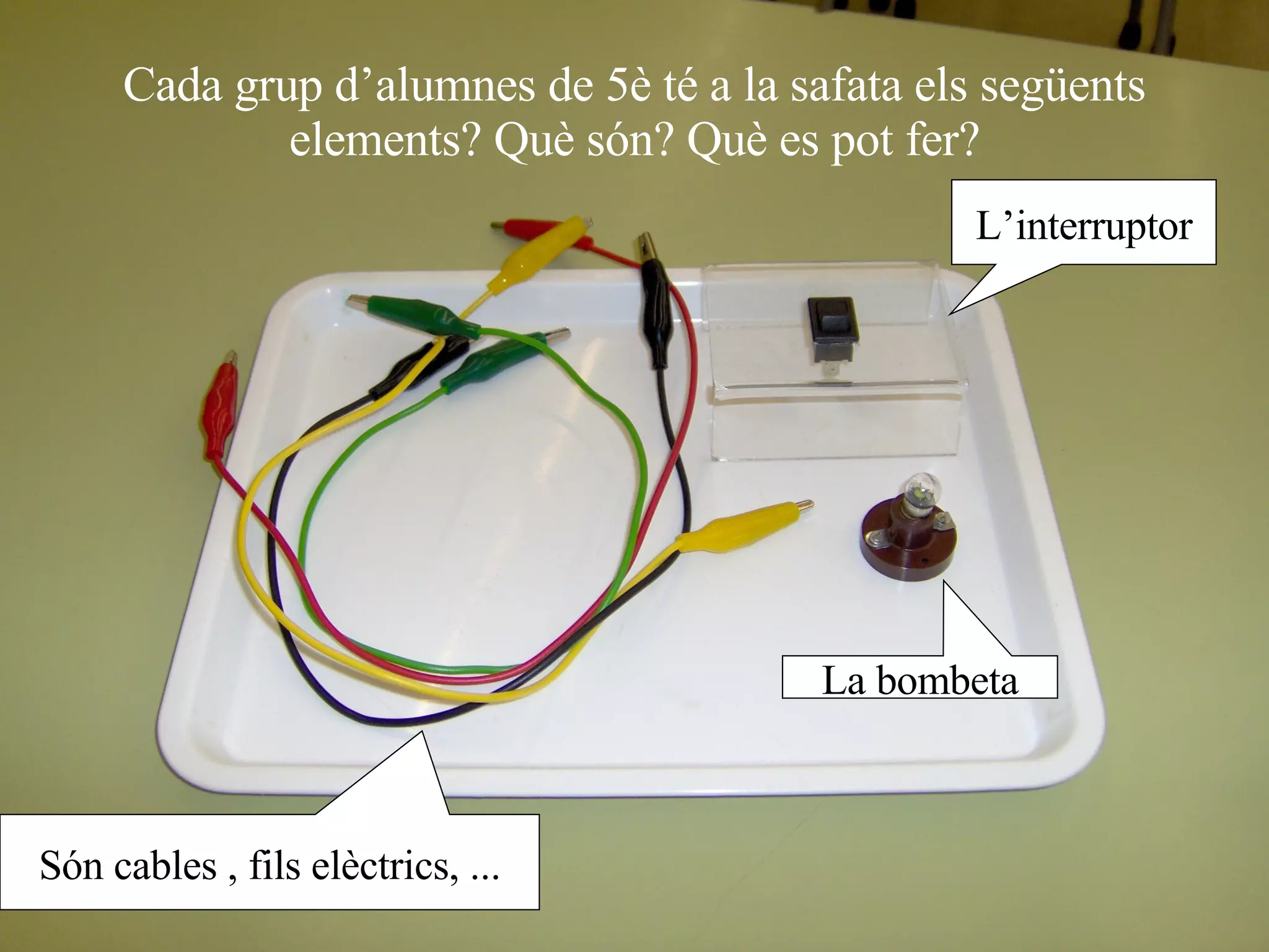 de 5è té a la safata els següents elements? Què són? Què es pot fer? Són cables , fils elèctrics, ... La bombeta L’interruptor