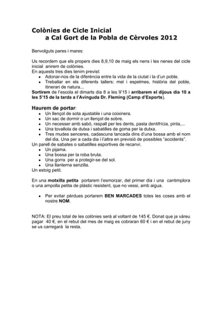 NOTA: El preu total de les colònies serà al voltant de 145 €. Donat que ja vàreu