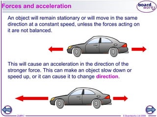 1. Forces cause objects to accelerate by either speeding them up, slowing them down, or changing their direction.