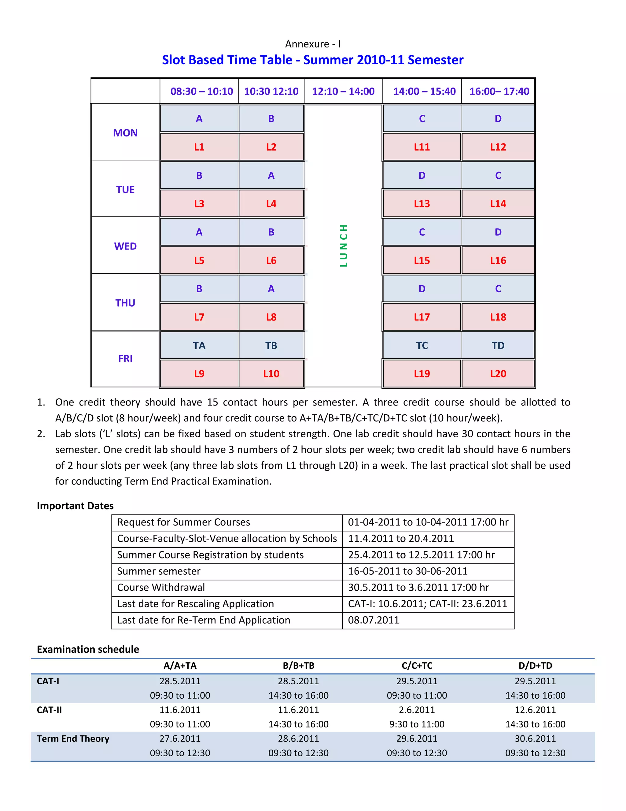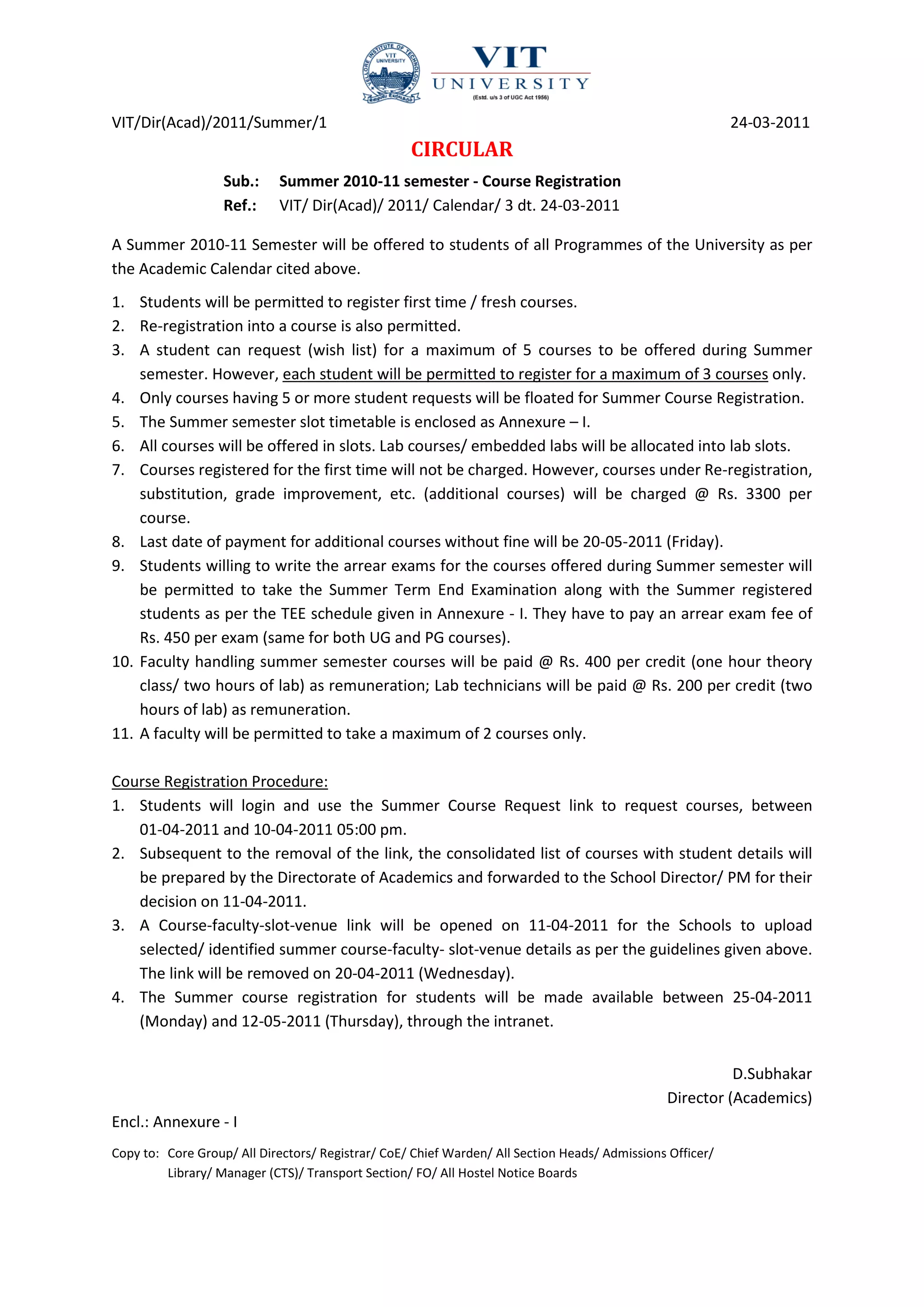1. The document announces a summer semester from May 16th to June 30th 2011 for students to register for new or repeat courses.