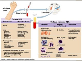 The document describes the human circulatory system. It has a closed double circulatory system, with the right side pumping deoxygenated blood to the lungs and the left side pumping oxygenated blood to the body. Blood enters the heart through veins and is pumped out to the lungs or body through arteries before returning to the heart again, in a continuous cycle. The circulatory system efficiently transports oxygen, nutrients, hormones and other materials around the body.