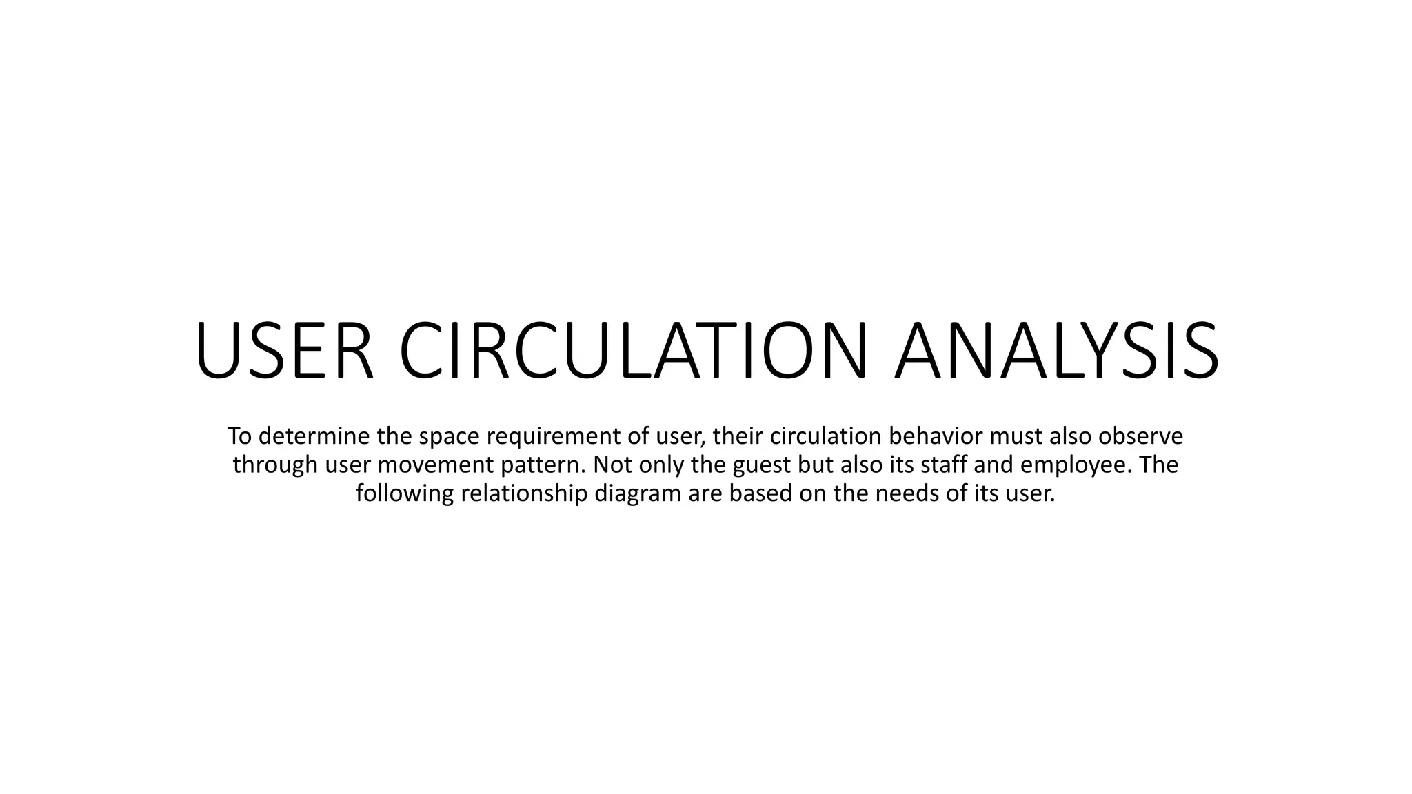 This document outlines the circulation patterns and flow of users within a hotel. It identifies the different types of users including guests, staff, employees, and event attendees. Diagrams show the flow between key areas like the entrance, lobby, parking, rooms, amenities, restaurants, and event spaces. Separate circulation is recommended for banquet users to avoid conflicts. The zones and sub-zones of the hotel are also outlined for space planning.