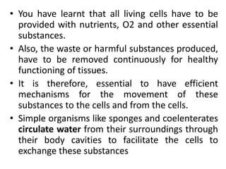 This document discusses the circulatory system in humans. It begins by explaining that blood and lymph are the two main circulatory fluids in the body, with blood being carried in a closed circulatory system of blood vessels and lymph being transported through the lymphatic system. It then describes the components of blood in detail. Next, it explains the structure and functioning of the human heart, including the cardiac cycle. It notes that the heart has four chambers and is able to efficiently circulate blood through a double circulation pathway to the lungs and body.