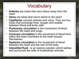 • Arteries aretubes that carry blood away from the