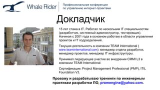 Доклад Сергея Поволяшко рассматривает управление рисками в IT-проектах, акцентируя внимание на различиях между рисками и фактами, а также важности коммуникации в управлении рисками. Автор делится своими методами идентификации и анализа рисков, а также предоставляет рекомендации по взаимодействию с проектной командой и заказчиком. Основная цель документа - улучшить процесс управления рисками и повысить его эффективность за счет наличия четких планов и их коммуникации.
