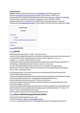 Buku 'Bahasa Malaysia Saintifik' oleh Prof. Datuk Dr. Asmah Haji Omar merangkumi penggunaan bahasa Melayu dalam bidang sains dan istilah akademik. Diterbitkan oleh Dewan Bahasa dan Pustaka pada tahun 1987, buku ini membahas ciri-ciri bahasa saintifik, termasuk istilah dan gaya didaktik yang berperibadi. Penemuan dalam buku ini membuktikan bahawa bahasa dalam sains masih mempunyai persamaan dengan bahasa umum dan berbeza dengan bahasa sastera.