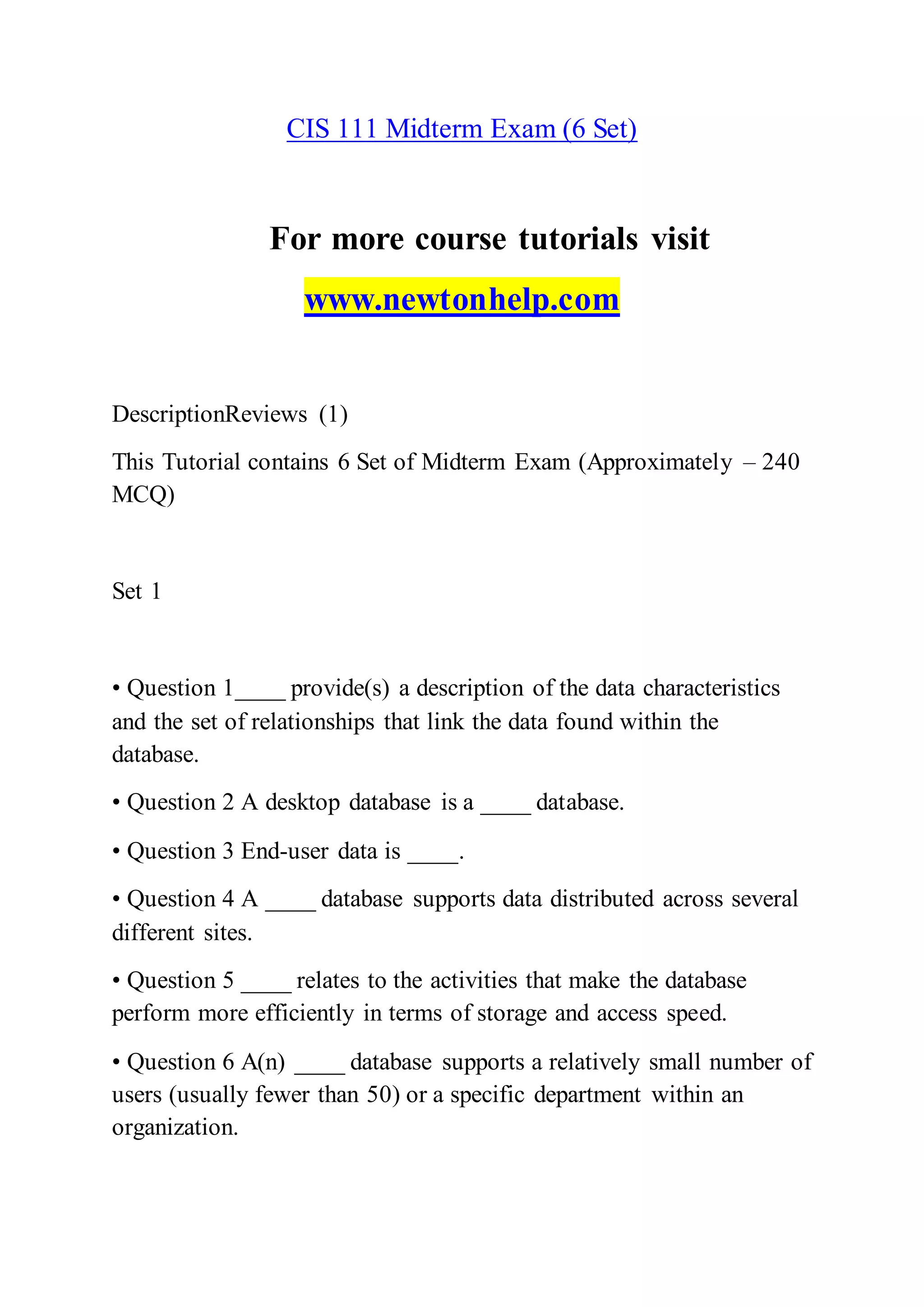 The document includes a comprehensive overview of the CIS 111 course, detailing various assignments and labs focused on database design, business rules, normalization, and SQL. Key assignments involve creating databases, visual models, and reports, emphasizing the importance of managing organizational data and applying database management systems efficiently. These tasks require adherence to specific formatting guidelines and learning outcomes aimed at developing skills in data modeling and database queries.