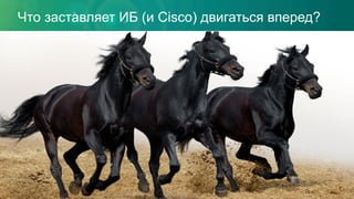 Документ описывает ключевые факторы, движущие информационную безопасность и стратегии компании Cisco по их контролю. Основные угрозы включают увеличенное время обнаружения вторжений и изменения в бизнес-моделях, требующие адаптации подходов к кибербезопасности. Cisco предлагает интегрированные решения для защиты сетей, централизованное управление и инновационные технологии для предохранения от современных угроз.