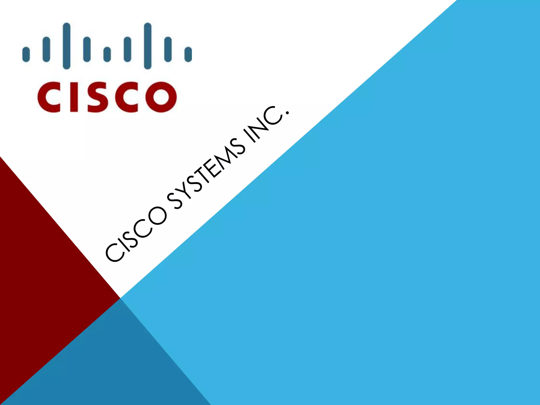 Cisco Systems is a large networking company founded in 1984 that generates over $40 billion in annual revenue. It has a dominant position in routers and switches with over 70% market share. However, competition from HP, Juniper, and others poses threats. Cisco's strengths include its strategic partnerships and acquisitions strategy, while weaknesses include lack of brand recognition in consumer markets and high prices. In the long term, Cisco aims to improve its position in consumer products and capitalize on opportunities in smart grid technology and cloud computing.