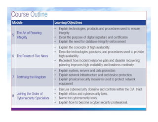 The document discusses cybersecurity, including the different types of cyber criminals and cybersecurity specialists. It describes common cybersecurity threats like hacking, malware, and data breaches that can affect individuals, businesses, and organizations. The document also examines factors that contribute to the spread of cybercrime, such as software vulnerabilities, mobile devices, and the growth of internet-connected devices and large datasets. It outlines efforts to increase the cybersecurity workforce through frameworks, certifications, and professional development opportunities for cybersecurity experts.