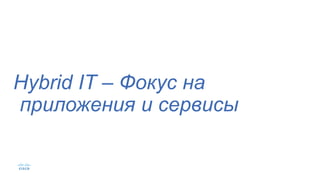 Документ обсуждает Cisco CloudCenter как платформу для управления гибридными облаками, которая предоставляет полное управление жизненным циклом приложений и автоматизацию развертывания ресурсов. Он подчеркивает необходимость эффективного управления растущими облачными сервисами и предлагает гибкие решения для оптимизации использования ресурсов. Также рассматриваются преимущества миграции приложений между различными облачными провайдерами и создание интегрированных решений для бизнес-клиентов.