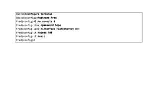 Документ обсуждает работу с коммутаторами Cisco и их конфигурирование. Упоминается, что команда show interface status не функционирует в Packet Tracer, но работает на реальном оборудовании. Это подчеркивает различия между симуляторами и настоящими устройствами.