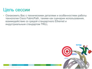 Документ представляет собой техническое описание технологии Cisco FabricPath, ее функциональных особенностей, преимуществ и сравнений с другими протоколами, такими как TRILL. Основное внимание уделяется архитектуре, управлению трафиком, масштабируемости и интеграции FabricPath в существующие сети. Затрагиваются вопросы конфигурации и устранения проблем в сетевой инфраструктуре, построенной на данной технологии.
