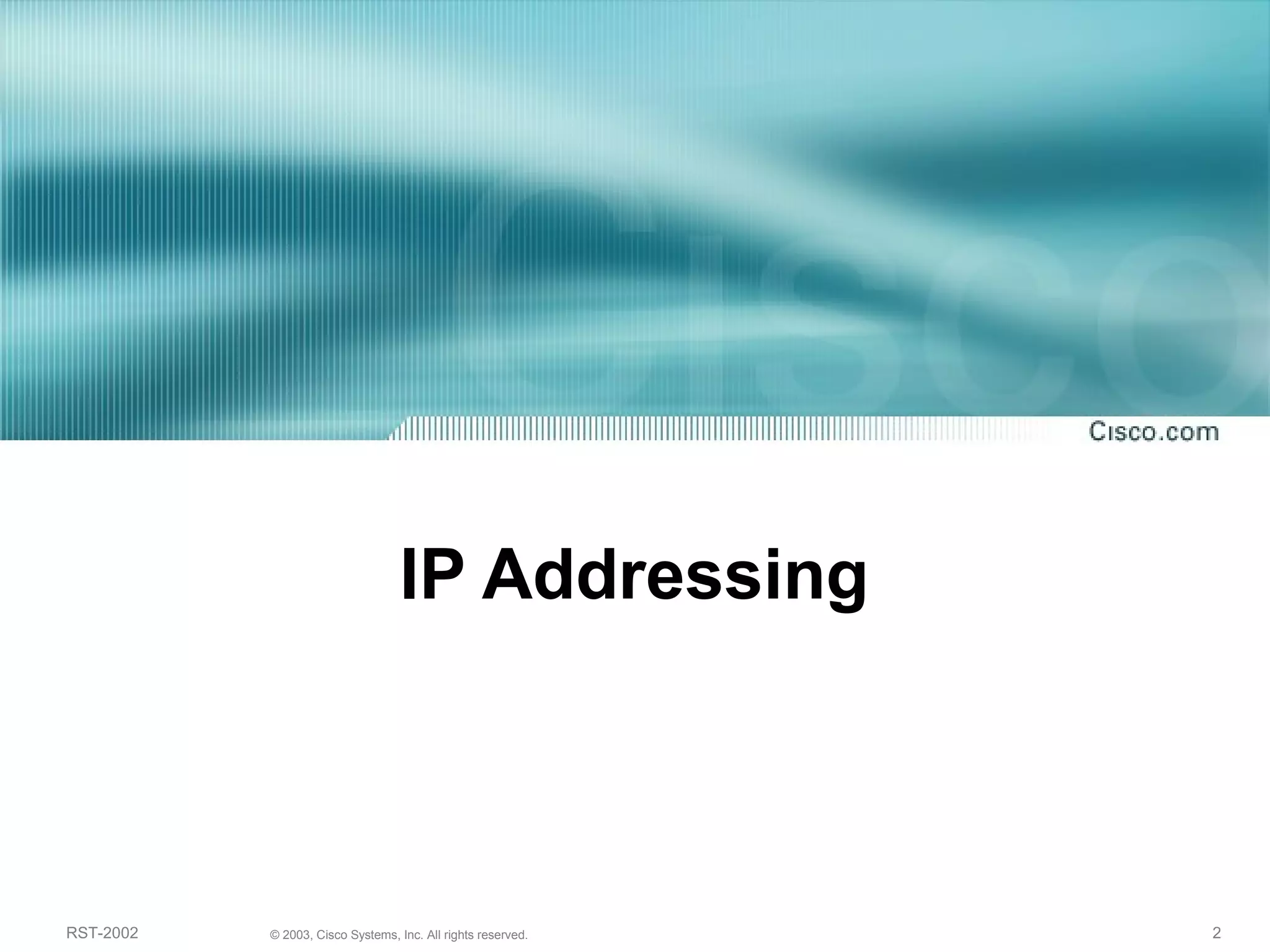 The document discusses IP addressing and subnetting. It begins with an overview of basic IP addressing concepts like dotted decimal notation, network masks, prefixes, and how to determine the network and host portions of an IP address. It then covers techniques for working with IP addresses and prefixes, including how to calculate the number of hosts in a subnet. The goal is to make these IP addressing concepts easier to understand and work with.