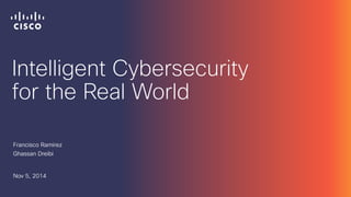 This document discusses the evolution of cyber threats from viruses in the 1990s to advanced persistent threats today. It notes that 100% of companies connect to domains hosting malicious files or services, 54% of breaches go undiscovered for months, and 60% of data is stolen within hours. The document advocates for a holistic approach to cybersecurity called the Global Security Sales Organization that covers the entire attack continuum from before, during, and after attacks. This includes visibility across the network, endpoints, mobile devices, virtual systems, and cloud to detect, block, and defend against threats.