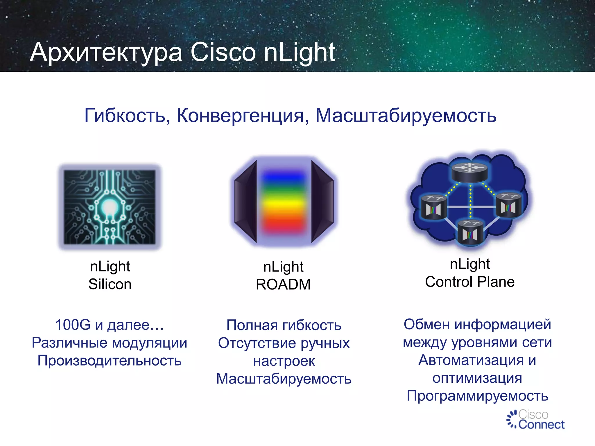 Документ описывает архитектуру и функционал многоуровневой интеллектуальной плоскости управления Cisco nLight, предлагая гибкость, масштабируемость и автоматизацию сетевых процессов. Основное внимание уделяется интеграции IP и DWDM, оптимизации ресурсирования и снижению операционных затрат через механизмы, такие как PCE и SDN. В нём также рассматриваются варианты восприятия сети, улучшение отказоустойчивости и взаимодействие между уровнями сети.