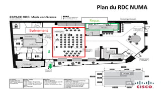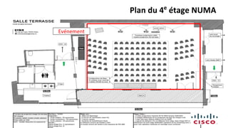 This document outlines an agenda for a 48-hour hackathon in Paris to invent the city of the future. It will include presentations from Cisco and various technology partners on topics like smart cities, Internet of Things, and cloud platforms. Participants will then pitch project ideas before forming teams and beginning development. Over the weekend, teams will work on their projects, receive mentoring, and do practice pitches. On the final day, projects will be presented to a jury for cash prizes. The goal is to generate innovative ideas for connecting people, data, and devices to improve city services.